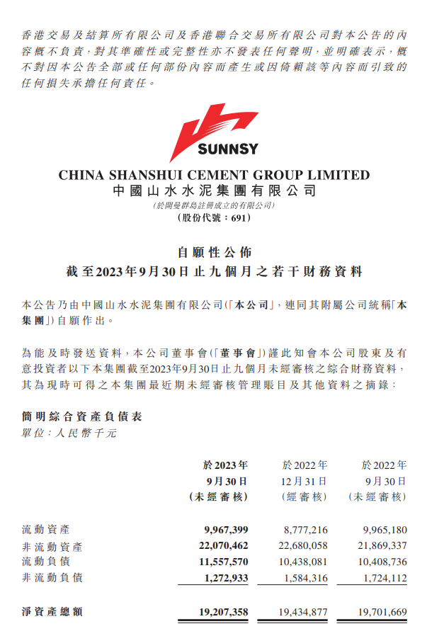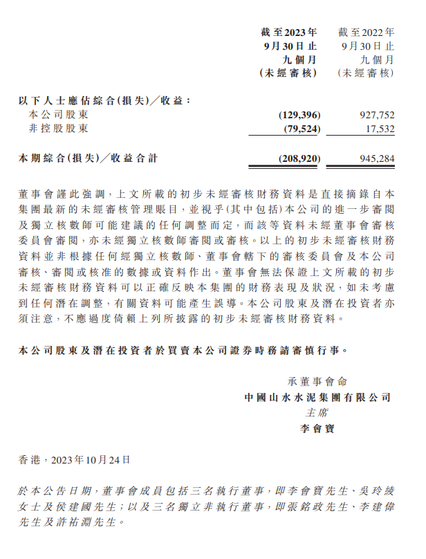 10月24日晚间,塔牌集团、福建水泥、山水水泥三家水泥上市公司披露前三季度业绩。其中塔牌水泥业绩同比大增487.3%,福建水泥亏损2.30亿元,山水水泥亏损1.88亿元。详情如下: