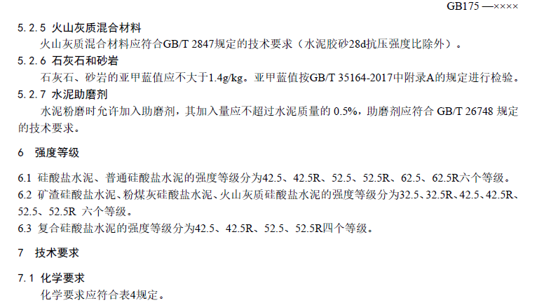 对粒化高炉矿渣、粉煤灰、火山灰质混合材料等提出了具体的技术要求;