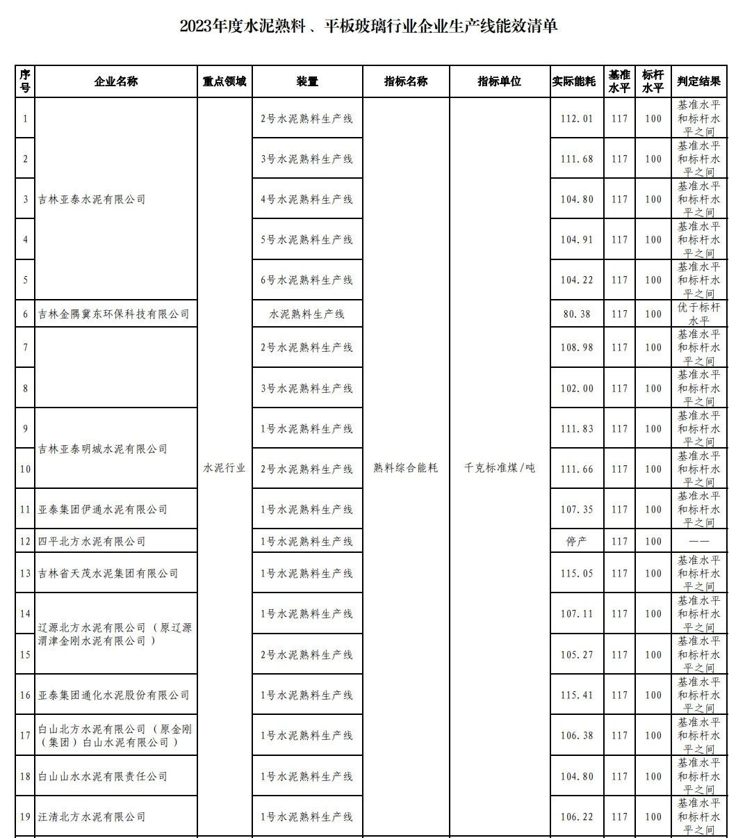 6月18日,吉林省工信厅发布2023年度全省水泥熟料企业生产线能效情况。