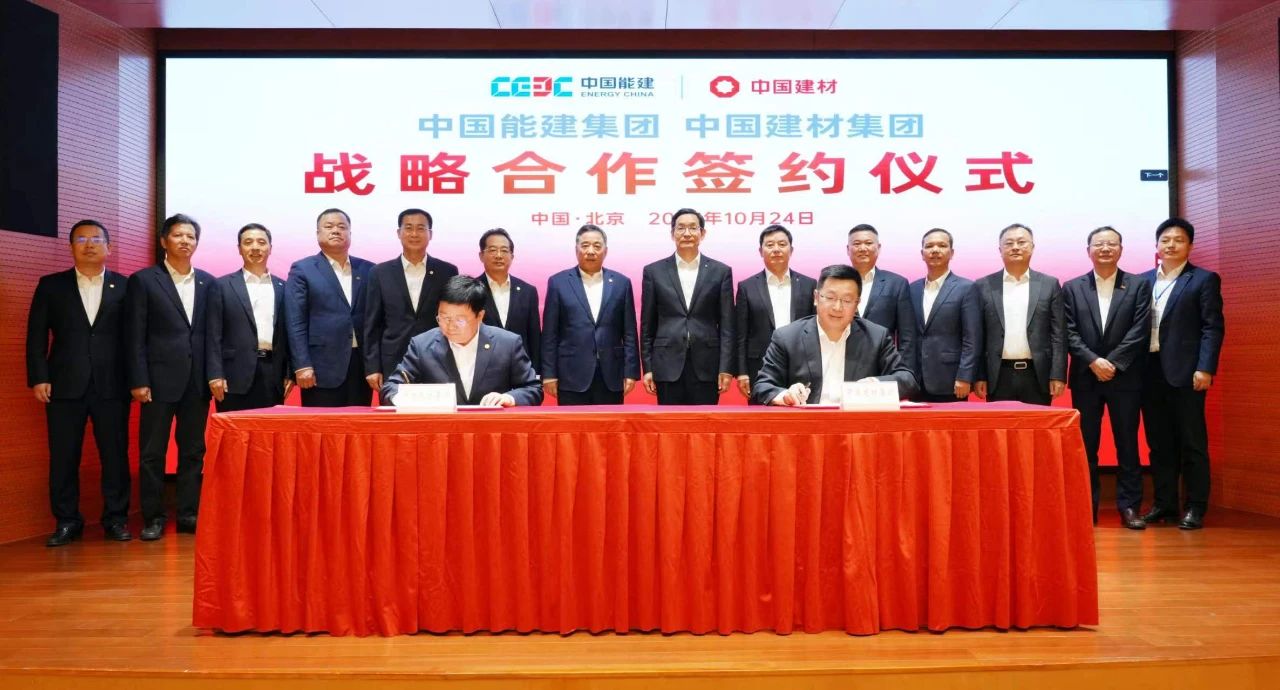 10月24日,中国建材集团党委书记、董事长周育先与到访的中国能建党委书记、董事长宋海良举行会谈。双方就进一步加强多领域战略合作、携手推动高质量发展进行座谈交流并签署战略合作协议。中国能建党委常委、副总经理吴云,总经济师、市场开发事业部总经理周小能,中国建材股份执行董事、副总裁王兵等出席会议。