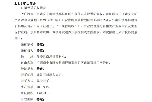 广西拟出让储量2.4亿吨、800万吨/年超级大矿