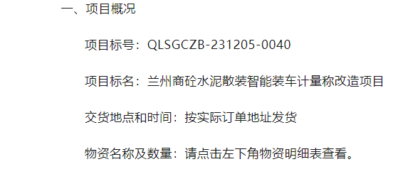 兰州商砼水泥散装智能装车计量称改造项目采购